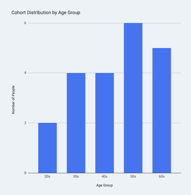 The cohort skews mature, with a clear concentration in ages where longevity and prevention become priority concerns. They are experienced, data-inclined, and willing to invest in optimizing their health trajectory.