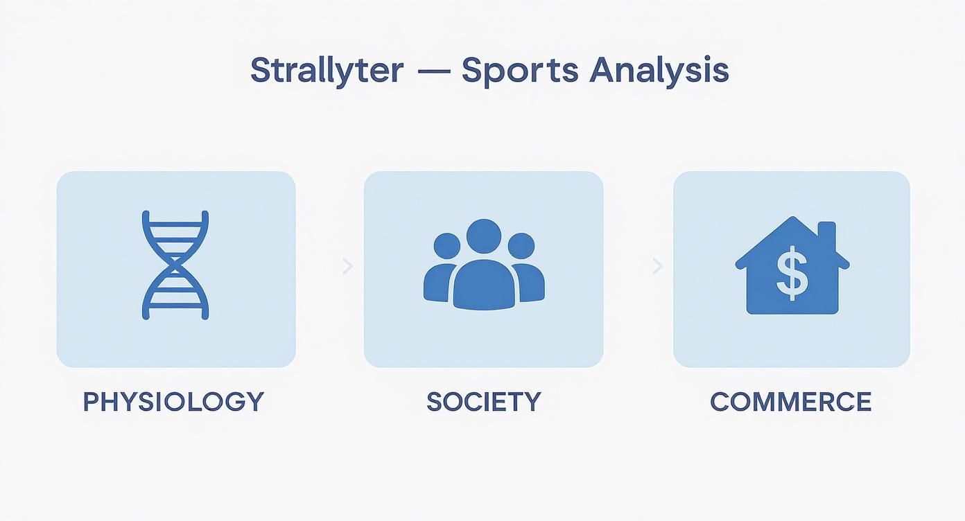This infographic does a great job of breaking down the three core pillars of sports analysis: physiology, society, and commerce.